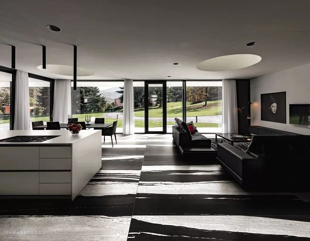 像设计家具一样,美术是现代室内装饰的时尚元素。带有全景风景的大型陶瓷平板,结合照片墙纸和图形的逼真的印刷品在内部创造了美术馆的氛围,从而增加了整个项目的价值。