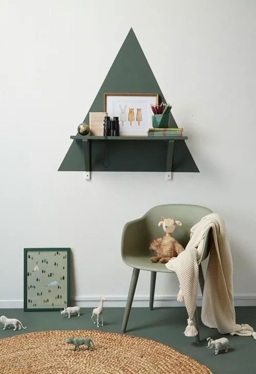这种色块更加有趣,配合灯饰,用色块涂出一个三角形的灯光范围色块,十分新奇有趣,可以参考。