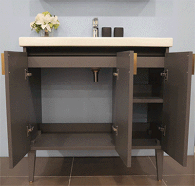 考虑到收纳合理性和便捷性,不同尺寸浴室柜柜体在收纳空间规划和分隔设计上进行了区分。小尺寸柜体主要采用双开门或双抽屉设计,可根据不同设计放置不同体量的物品,如双开门式可放置日常洗漱用品沐浴露、洗发水、洗衣液等大件物品,抽屉则适合放置备用毛巾、洗手液、吹风机等小件物品,另外用收纳盒做进一步的整理也是非常方便的事情。大尺寸柜体则主要采用三开门设计或双抽屉+单开门组合式设计,大小物品均可根据使用习惯得到分类归置。在木合金等优秀选材加持下,收纳物品即使长期不使用,也不会受到落灰返潮的影响。