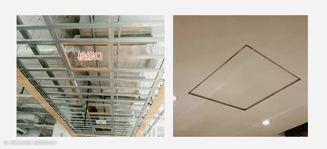 检修口做法,只需了解最基础最标准的即可,如:成品检修口(石膏板+成品)和上人检修口。