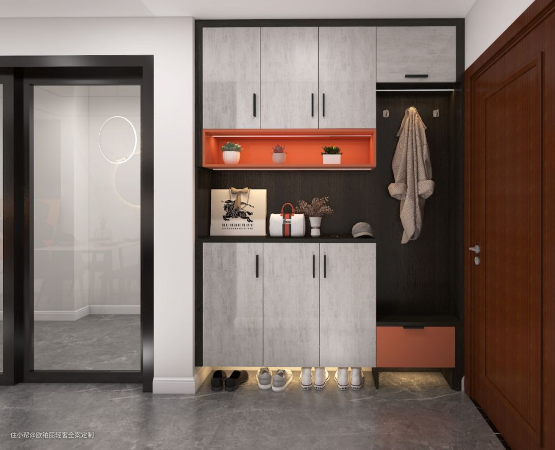 本期案例是一个幸福的三口之家。高级灰+爱马仕橙撞色混搭,打造出屋主菊姐喜欢的个性轻奢风。改造衣帽间,空间充分利用,具备颜值与功能,快来看看吧~