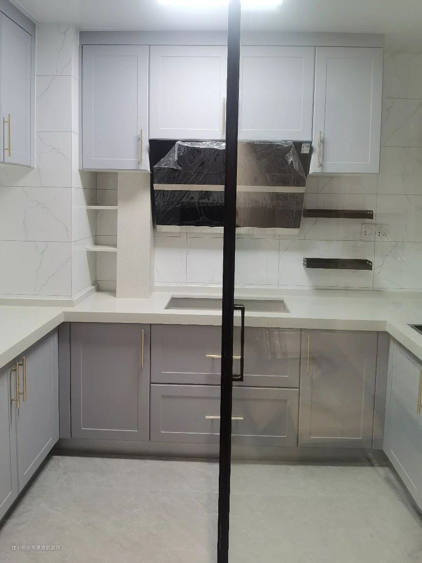最后就是厨房了,定制了“U”字型的橱柜,刚好把厨房空间填满,水槽与燃气灶中间形成了“洗、切、炒”的顺序,左侧可以放小家电,布局特别合理。不过,燃气灶还没来得及安装,已经预留好了位置。安装的透明玻璃,可以透过窗户看到厨房里面,白天的可以增加采光,特别通透!分享于互联网,不代表公司任何立场,不承担任何责任如侵删。