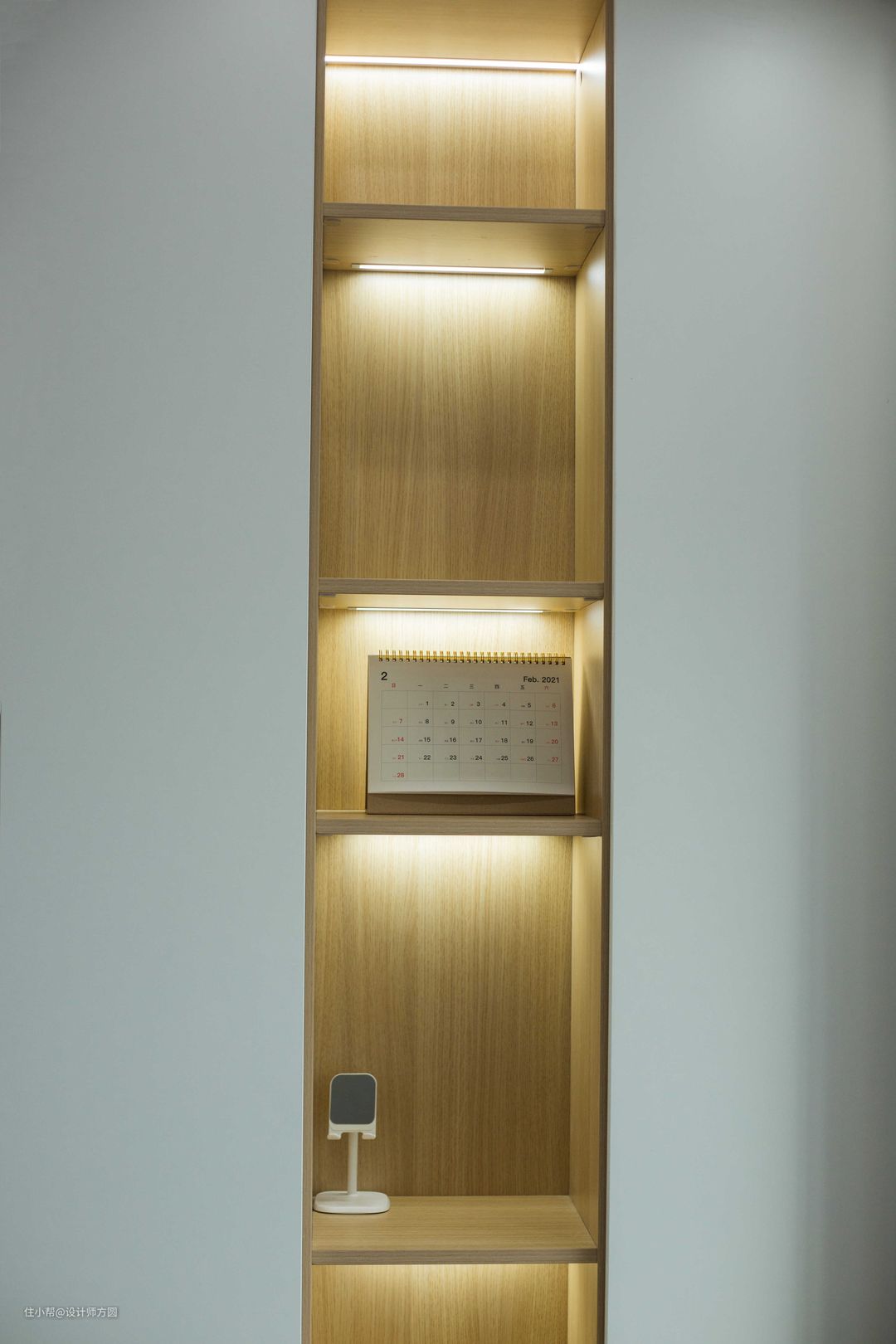 对于小户型来说,收纳是刚需,定制电视背景墙强化了收纳,顶层做了开放式区间,摆放屋主心爱的手办,加上里面灯光的设计,让家格外的亮眼~