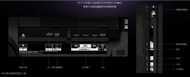 数据接口标准和数量会影响实际用户体验,甚至会直接决定购买该电视产品。常用的的接口一定要有,同时数量要足够。比如家里需要接驳主机游戏、音箱和有线电视的话,那么三个HDMI接口就是十分必须。