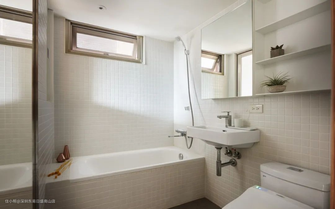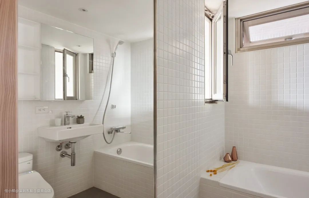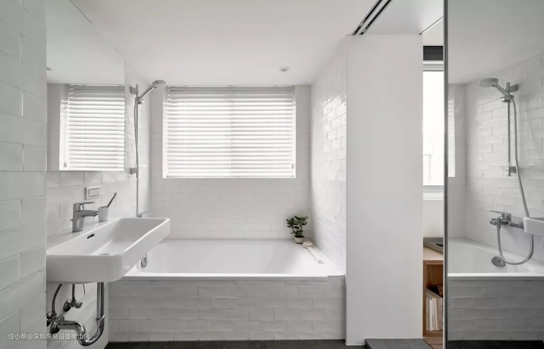 设计师没有拼命压缩卫生间面积,考虑到居住体验,特意将它设计得很宽敞,日常通风除湿很方便,还能塞下一个浴缸。