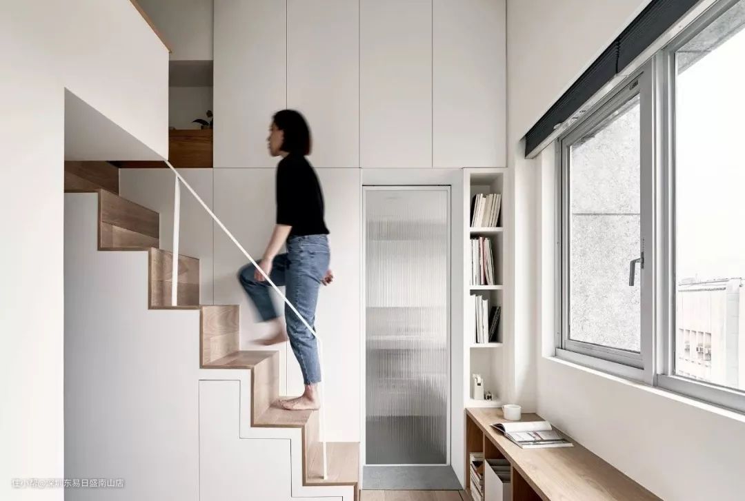 这个公寓面积仅为22㎡,公共空间的层高为3.3m。