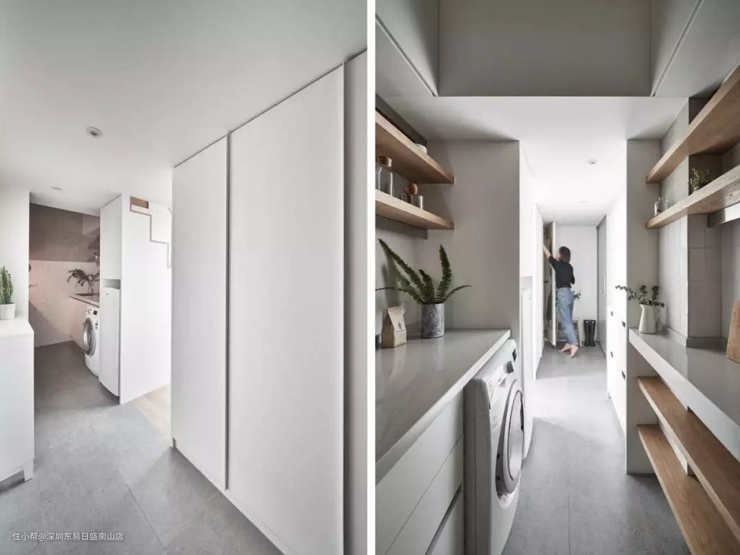 对于没有阳台的公寓来说,洗烘一体机放在厨房是个不错的选择,解放卫生间!
