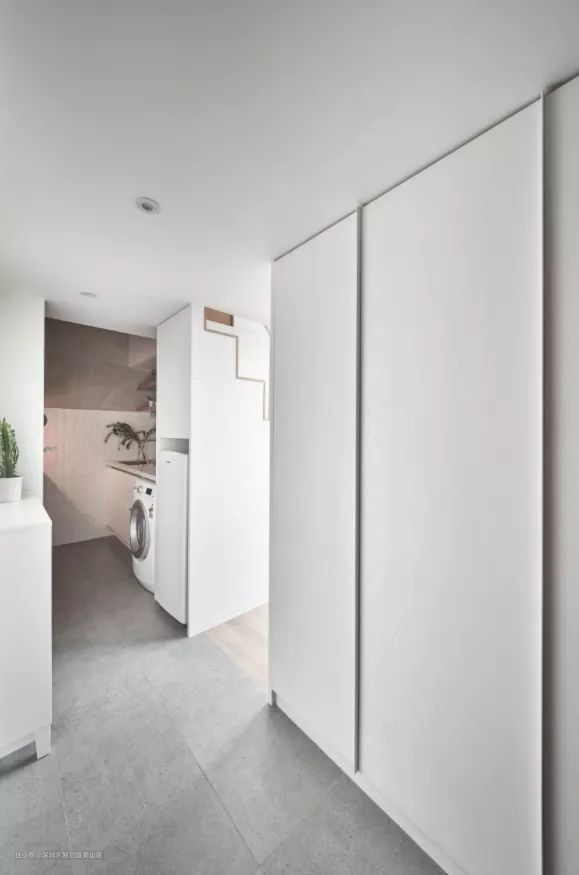 在楼梯侧面做柜子,不仅充分利用了垂直空间,还有一个小心机——超级方便。