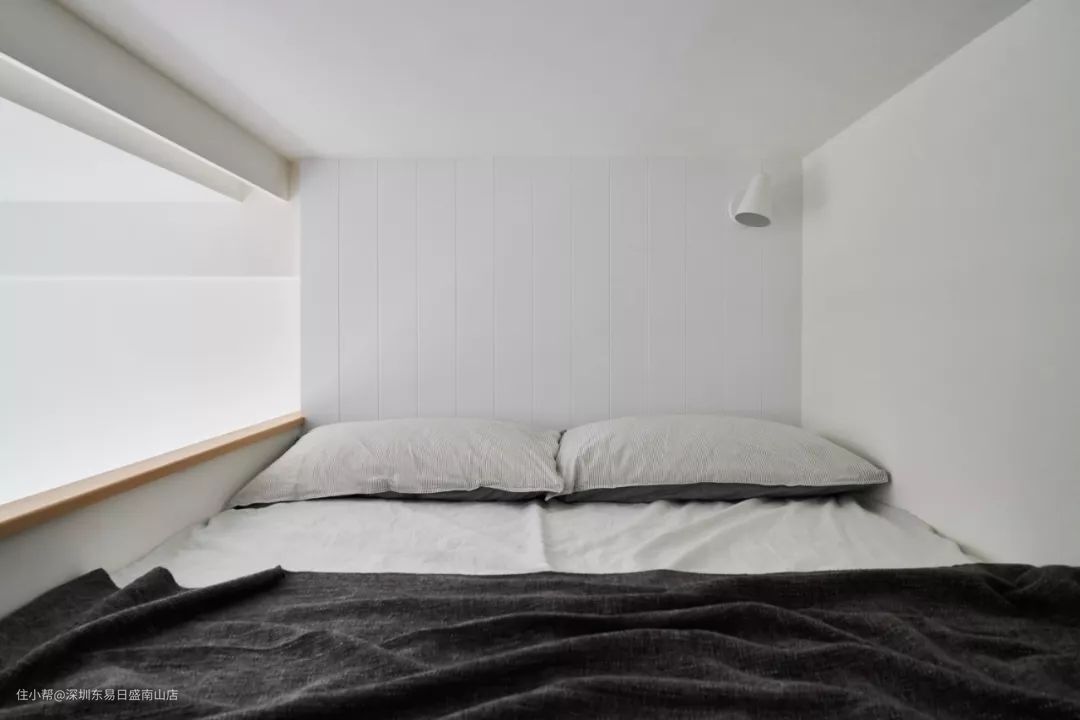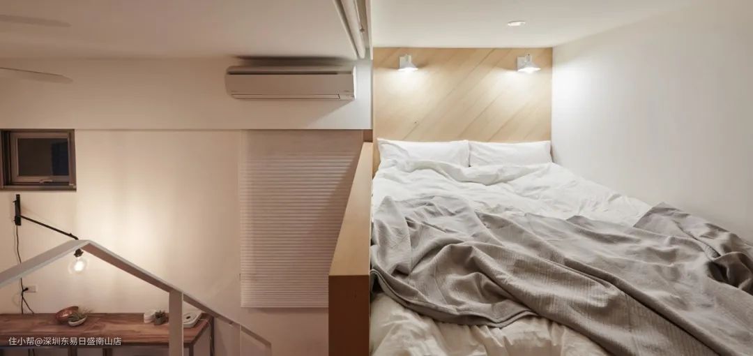 二楼这块地儿主要是床,一般只能塞下一个床垫+被褥,一两个床头壁灯足矣。