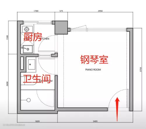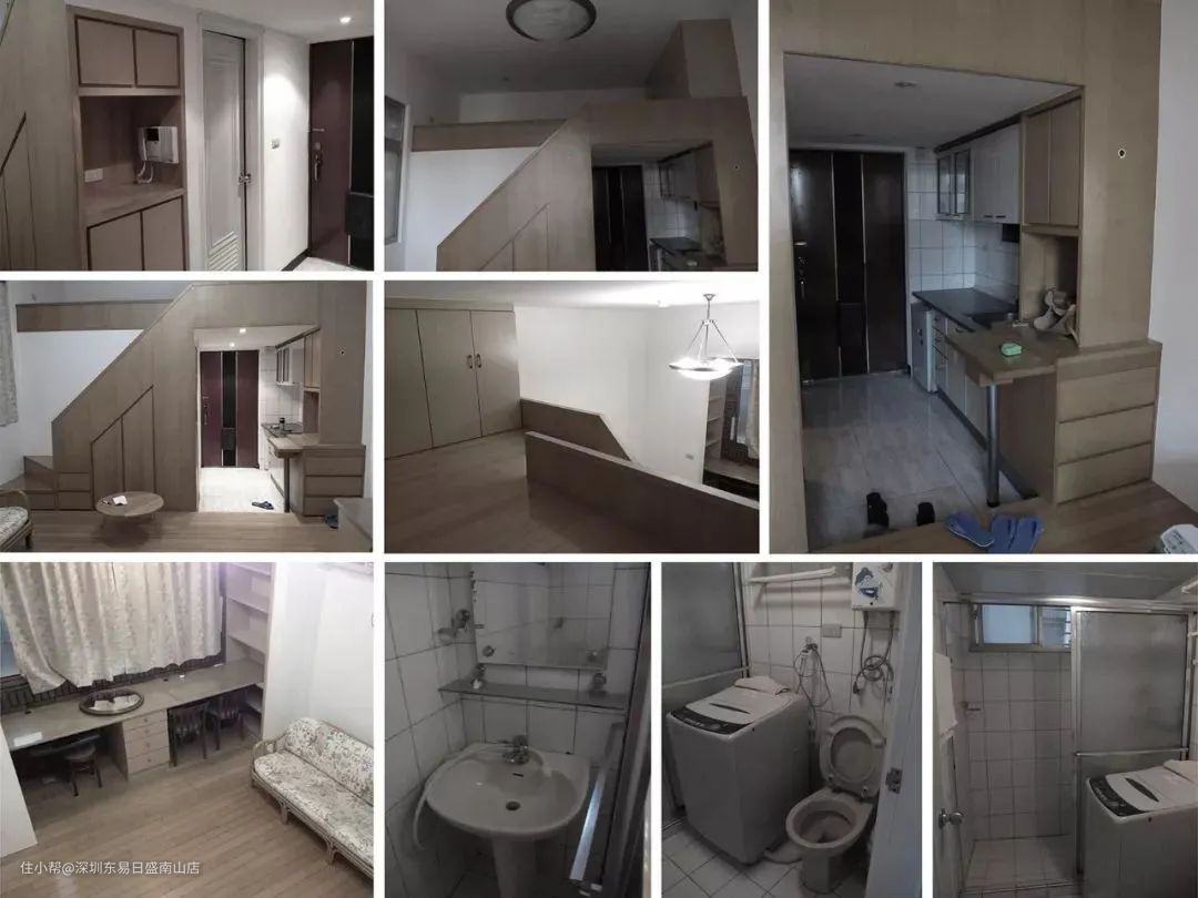 这个公寓面积仅为17.6㎡,公共空间的层高为3.4m,厨房卫生间的层高为3m,房龄超过10年。