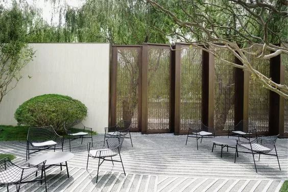 围墙的高度也大有讲究 ,从地面升起30cm,围墙能划分出两个景观范围,但能保持视觉上的连续性;当上升到120cm时,身体大部分看不到,这种高度除了划分空间,还给人以某种心理上的安全感;围墙的高度到180cm时,空间的封闭感达到最强,可起到完全分割的效果。