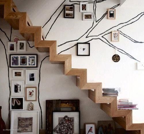 它给我的最初印象就是个性,波浪状的原木楼梯,然后在搭上富有个性的艺术画,因此,营造出一种艺术的气息,但是它没有护栏,所以,上下一定要小心。
