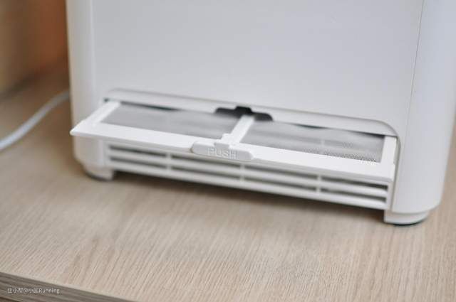 底部的进气滤网,可过滤掉大部分的灰尘,避免加湿的同时把桌面的灰尘带到空气当中,滤网可以清洗后重复使用。