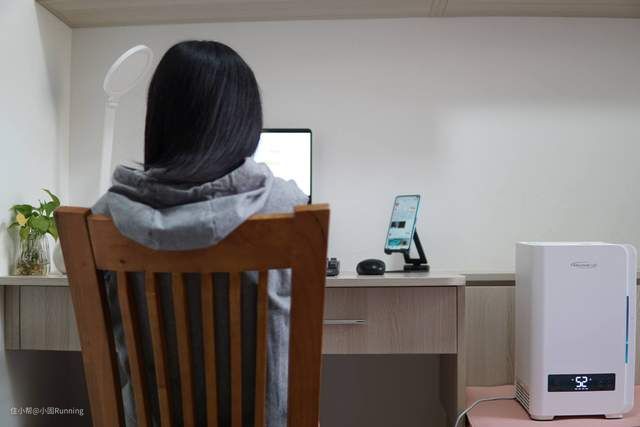 实测在书房这样放着用了一整天,书桌等区域,都没有打湿的情况。假期在家,人在哪,我就把加湿器搬到哪,有鼻炎的人惹不起。