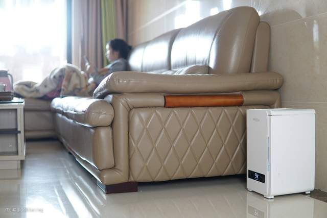 细节2:标配遥控器,可以设置风速、睡眠模式、预置湿度、定时。机器右侧有磁吸位置,遥控器不用时可以吸附在机器上,避免不在遗落在哪个角落。
