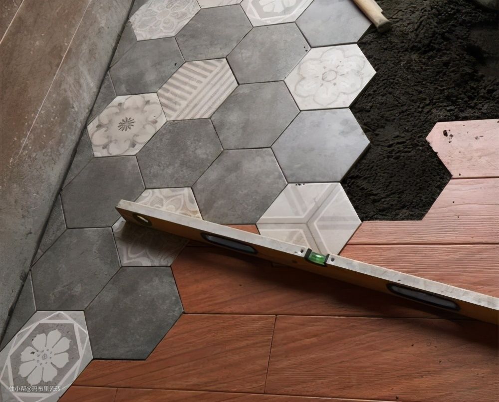 很多时候在铺贴木纹砖时,会采用人字型、工字型、菱形,甚至于鱼骨型方案铺贴,这些也更考验泥水师傅的细心与耐心。