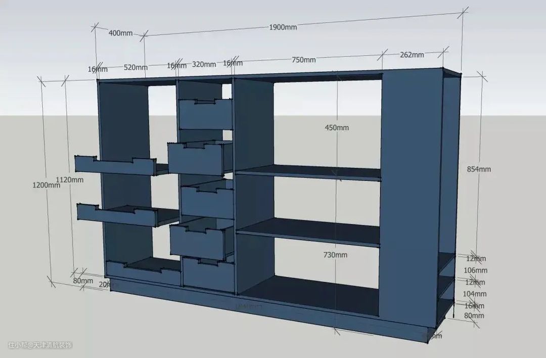 3,镂空腰线下安装抽屉,便于收纳零碎杂物(如:手饰、手表、数据线、剪刀等);