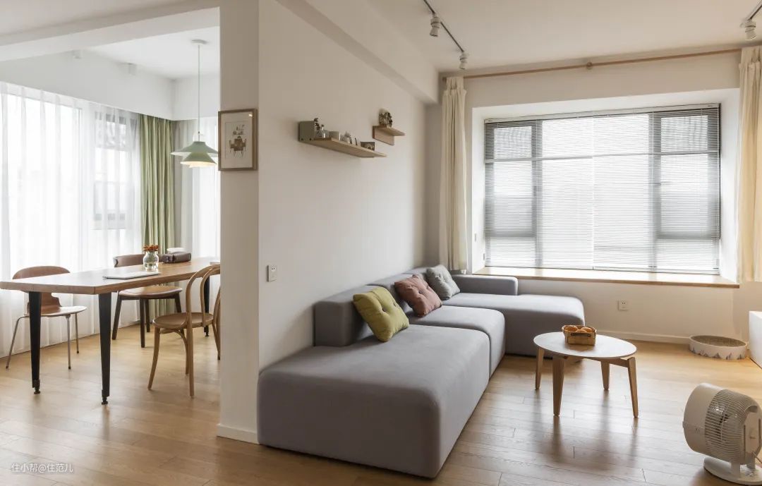 家具尽量轻便可移动,平时打扫无负担,沙发下方要么挑高,要么全部着地。