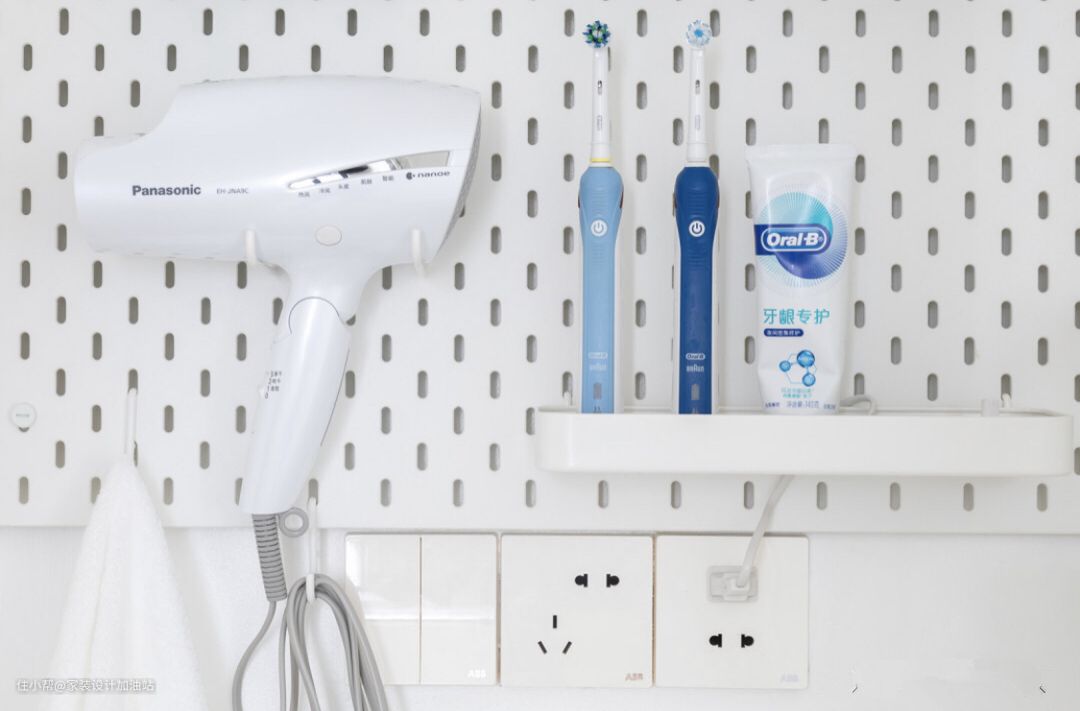 而且安装洞洞板后,正好可以用干区的插座,给电动牙刷充电,小细节上也远超过镜柜的便捷度。