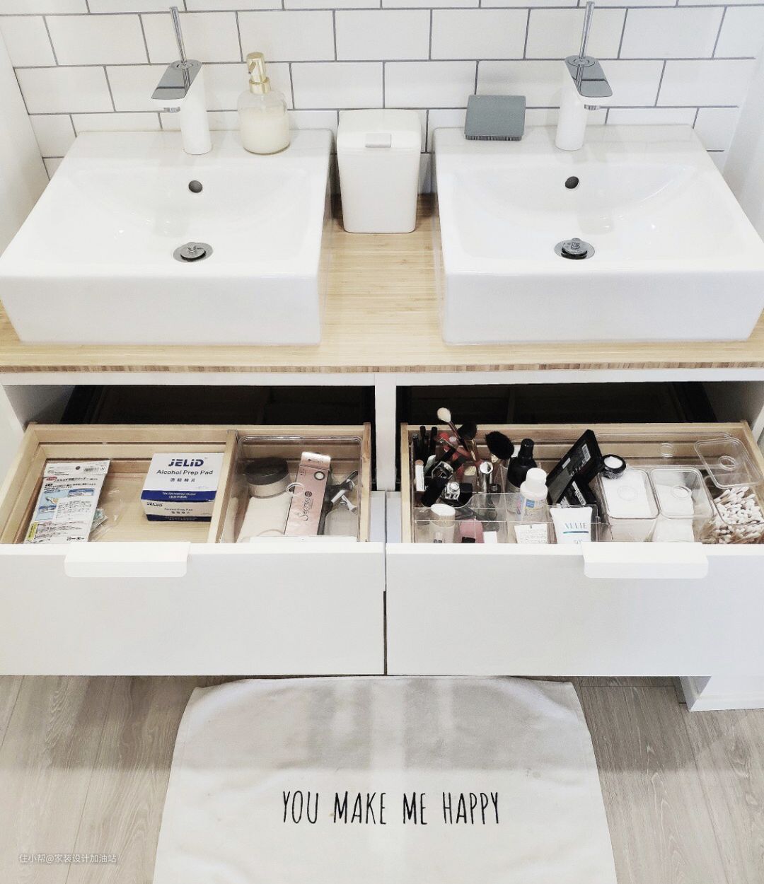 卫生间浴室柜下水,大多数做的都是地排,不过考虑到实用性以及保留浴室抽屉的完整,还是坚持做了墙排。
