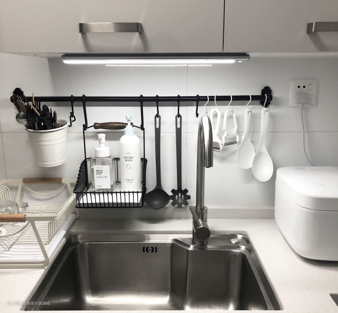 厨房功能区没有提前布线做灯带,所以每次做饭视觉上还是觉得暗。想了很多办法,最后发现有充电式的感应灯,可以直接粘贴在吊柜下,太实用了。