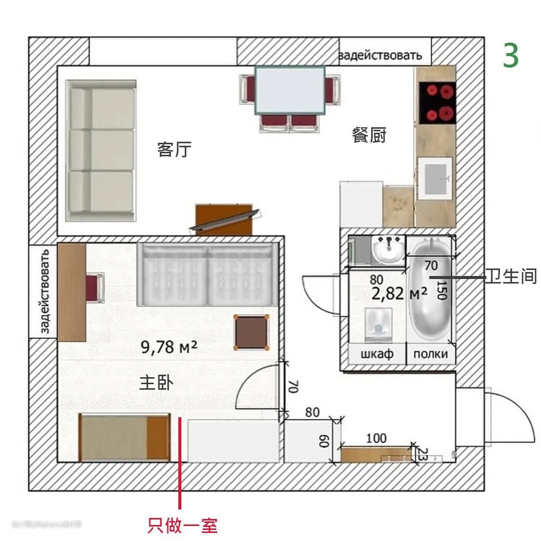 【 方案 3丨只做一室,增加客厅机能 】