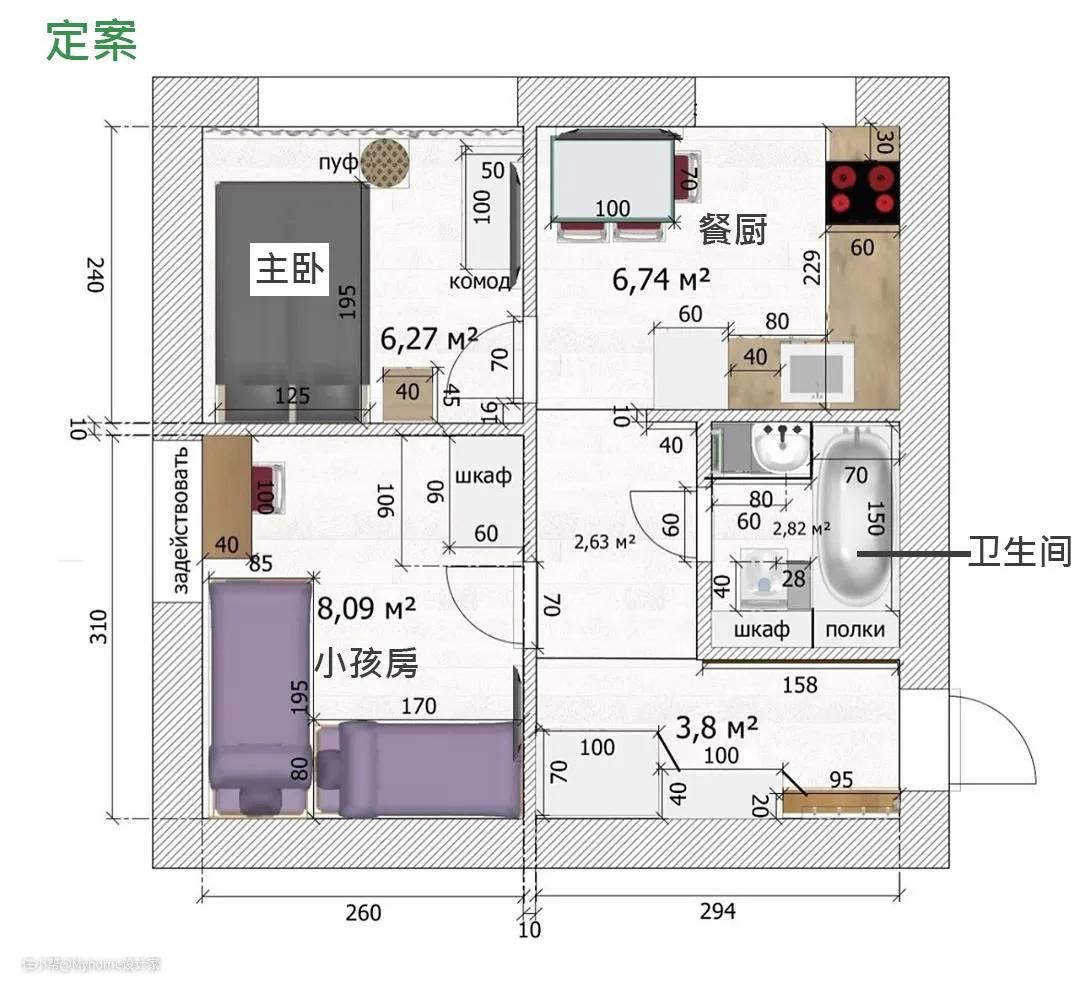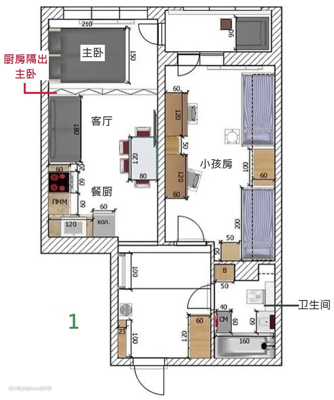 【 方案 1丨厨房隔出主卧 】