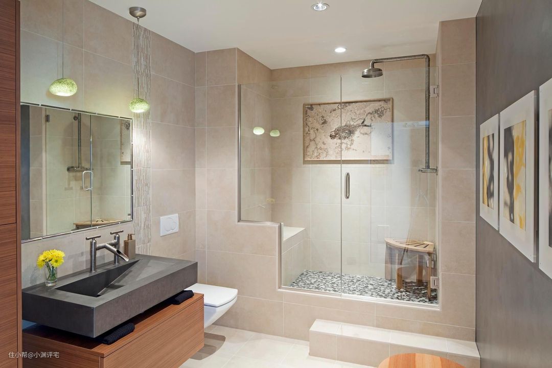 2.保证卫生间里的通透,尽量不要装那些不透光的隔断。做干湿分离的时候,也建议使用可以打开的浴帘,或者完全透明的淋浴房,不要用玻璃砖、矮墙等方式做隔断。