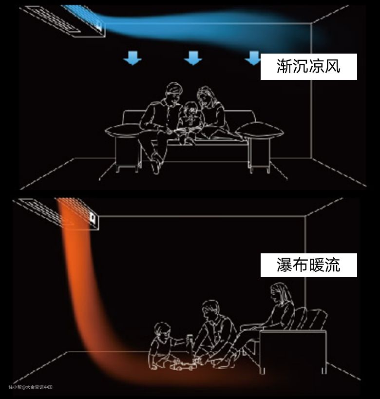 而在制热时,则让空调风向向下暖风直吹人的足部,然后热气向上传达,这样室内的空调效果才能舒适均匀。