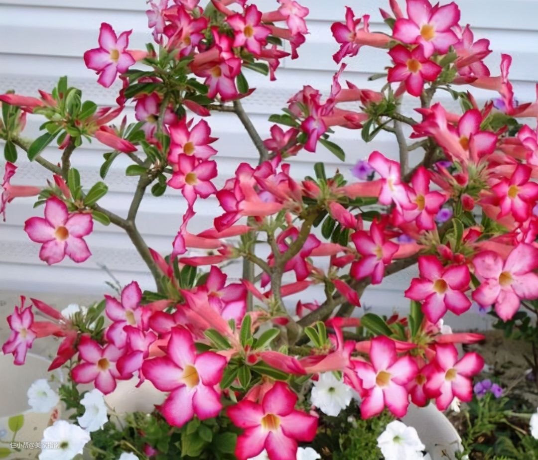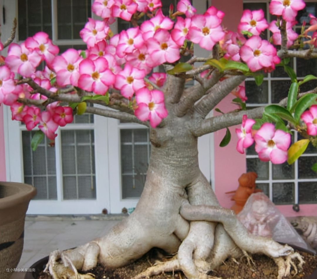 花卉的品种实在太多,所以养护的种类也是有限的。但是对于那些非常好看的品种,我还是知晓一二的。在院子里,婆婆养了好几盆上图中的花卉。而它正好我也认识。虽然根露在外面不好看,但是花朵非常鲜艳。这一花卉就是“沙漠玫瑰”。沙漠玫瑰,其实一听名字就知道它的美了。