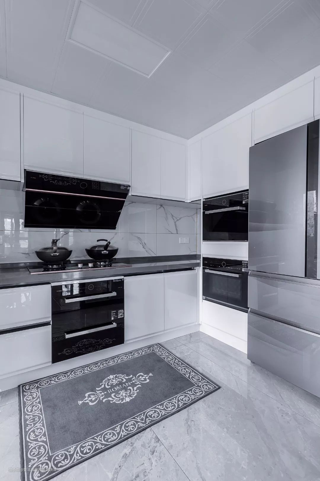 相比灰色的冷淡,雅白的这样干净优雅的地砖,用在厨房的墙面,再搭配上白色的墙面砖,整个空间会显得更加明亮干净大方。