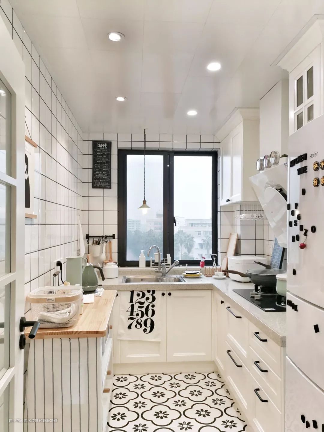 厨房的地面,铺贴六边砖也是非常简约文艺的选择,可以让空间显得简约优雅而又有立体感。