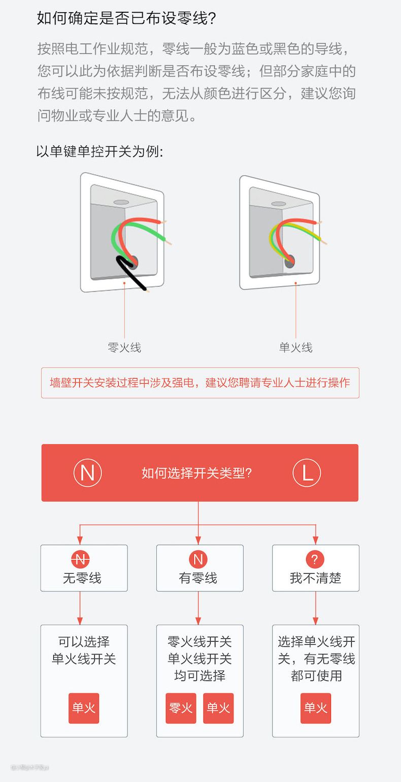1、墙壁开关留零线