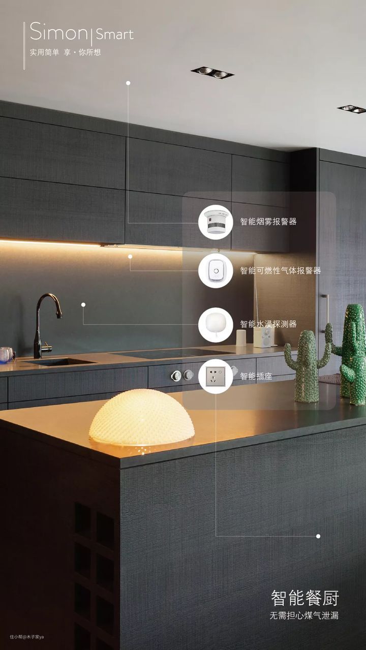 安防报警:智能门铃、燃气报警、水浸报警、门窗报警、烟雾报警等,需要加配各种报警器与智能系统联合使用。