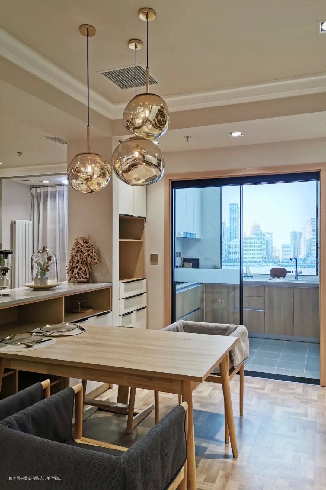 如果担心开放式厨房的油烟问题,可以做成半开放式的,选用玻璃隔断,视野和采光方面都能保持通透。