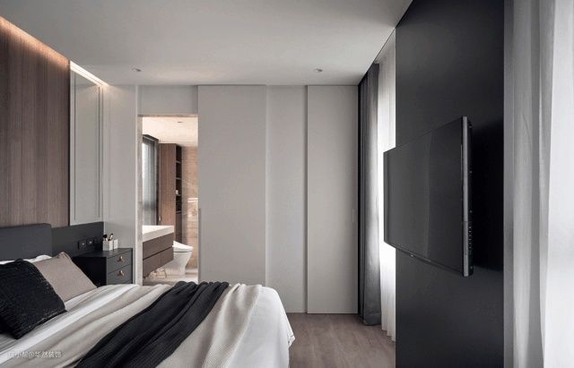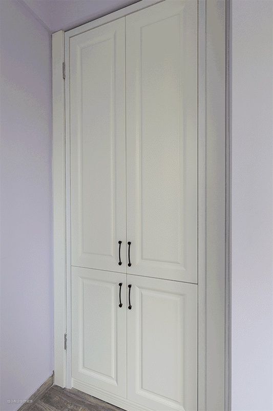在通往衣帽间或储物柜这样的地方,做一扇门隐藏其中,整体和柜子融为一体,比如卧室一整面的通顶大柜子中,藏着一扇通往衣帽间或者卫生间的门。