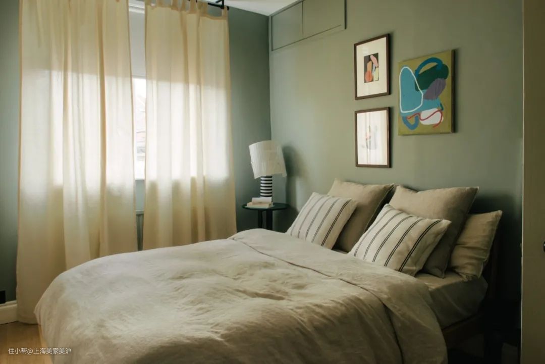 淡雅朴素的中性色调,也淋漓尽致地展现了卧室的质朴、舒适、干净,营造了平静更宜睡眠的环境。