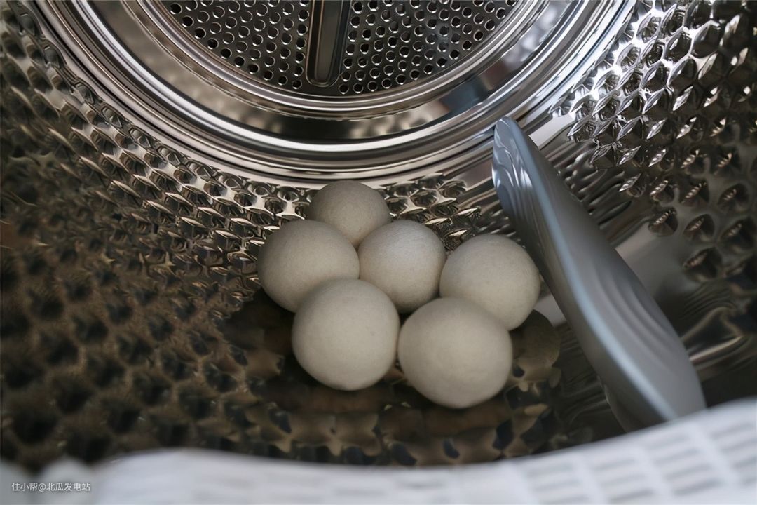 可以在烘干的时候丢几个羊毛球,避免衣物烘干的时候缠绕在一起,进一步降低烘干时间,还有防止静电、让衣物更平顺的作用。