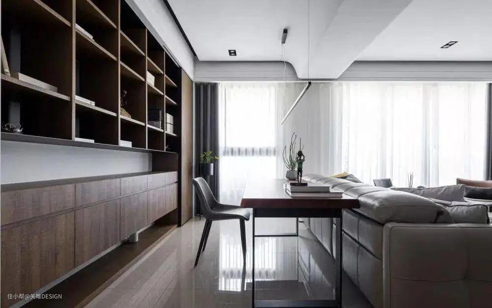 家里没有多余房间能单独做书房,可以在沙发背后放个工作台,打造一个开放式的工作区。