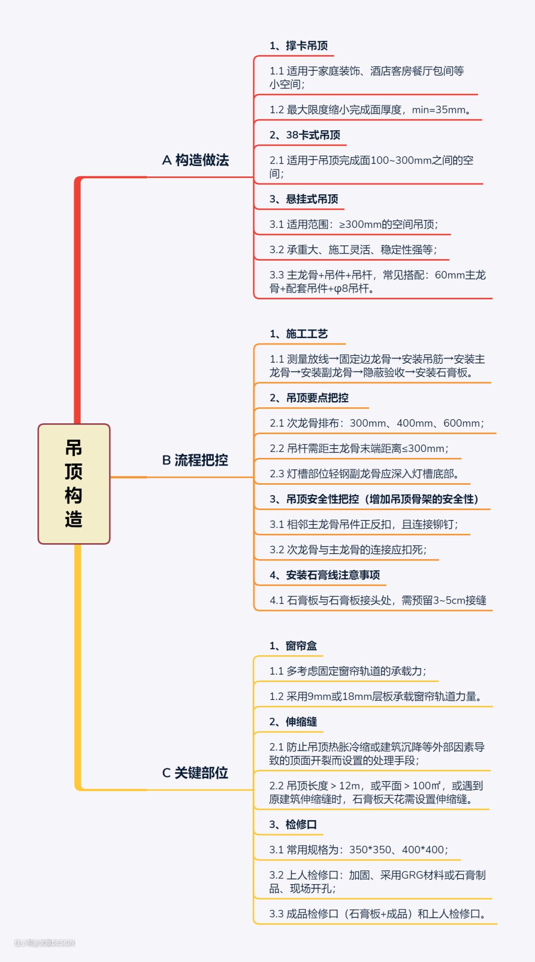 接下来,咱们就来具体分析一下吊顶构造的工艺内容,主要解决以下问题:
