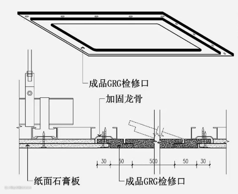 ② 检修口材料建议采用GRG的材料或石膏制品;