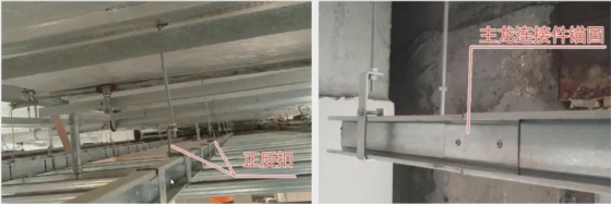 相邻的主龙骨吊件应该是正反扣,并且连接铆钉,相邻的接头应该错开,以便加强它的稳定性。