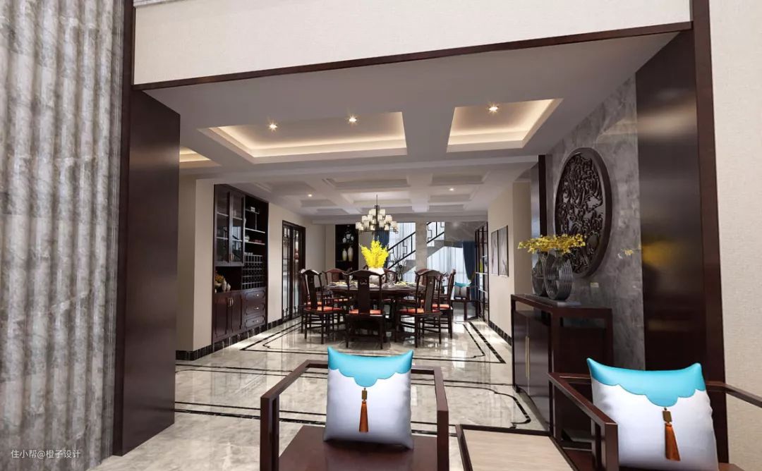 ▲如果走廊贯穿到客餐厅区域做成一体的话,可以做成独特的吊顶造型,然后照明也巧妙结合起来,让空间更加丰富多彩。