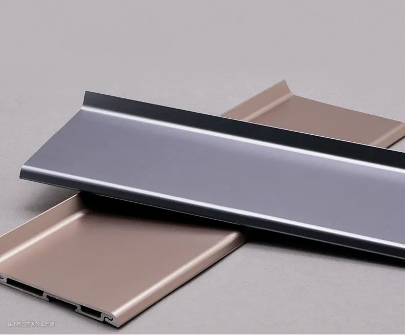金属踢脚线的材质有两种:不锈钢和铝合金的。带有金属质感的踢脚线可以增加空间轻奢气质和精致范儿。