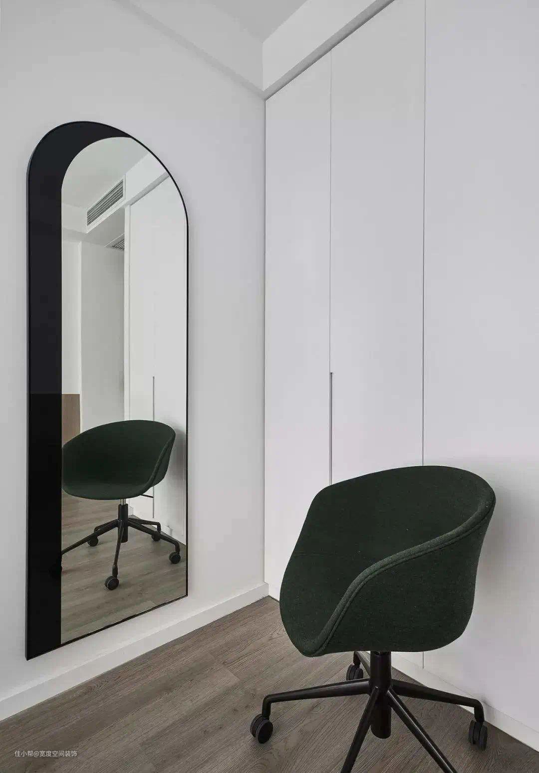 要是家里有大大的衣帽间,应该就没有放镜子的烦恼了。没有衣帽间的家庭,卧室空间够的情况下,在衣柜旁找个看着舒服的地方安排上即可;