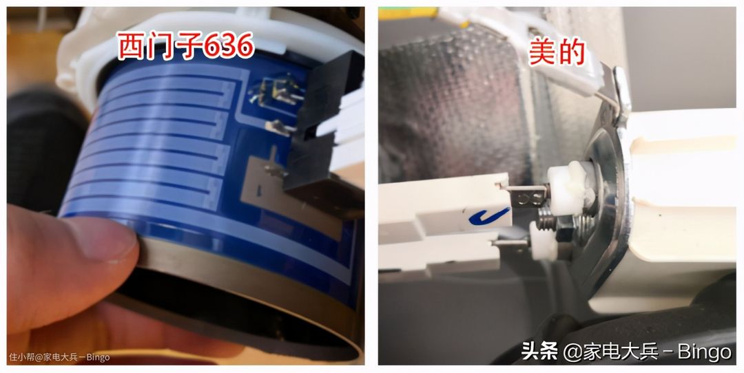 洗碗机为了提高洗净率,都会采用热水进行餐具的清洗。西门子636洗碗机在它的集成电机上加装了稀土厚膜材料(没错,就是我拆坏了的那个电机),是一种高功率的电发热材料;而美的P40使用的是电加热管,在硬件上稍逊一筹。