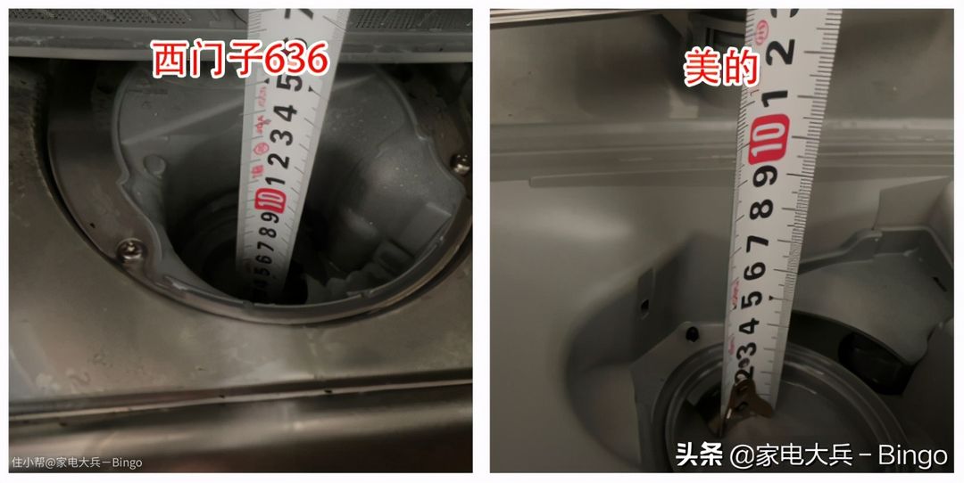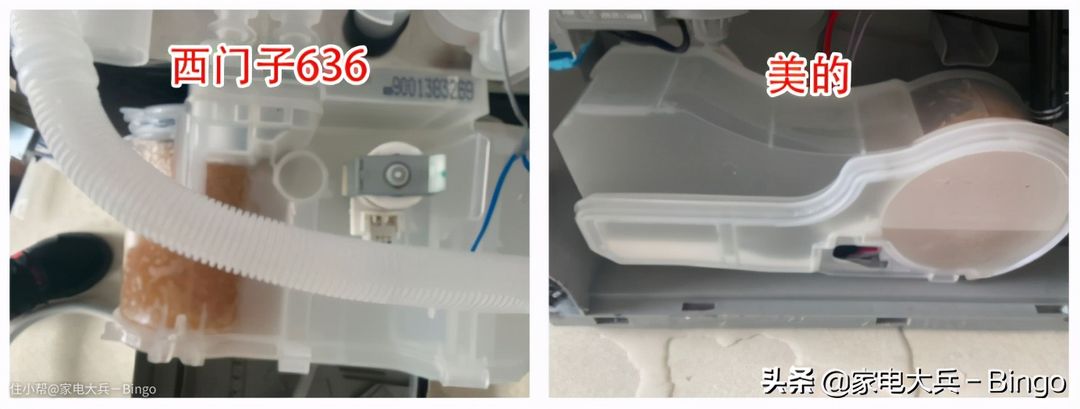西门子636洗碗机排水孔更深,接近11cm,滤网更大(可拆卸);美的P40排水孔只有6cm,滤网也可拆卸清洗。洗碗机因为采用了强排水方式,相对直排水(下排水)存水会少些,但不是没有,洗碗机如果长时间不用,最后一次请使用其自清洁功能,否则存水时间久了,残留的水会产生异味。另外提醒各位兄弟一点,家里面安装了垃圾处理器的,如果洗碗机和垃圾处理器需共用同一个下水,请让垃圾处理器的安装师傅给您安装单通阀(注意:不是洗碗机安装师傅,是垃圾处理器师傅)。