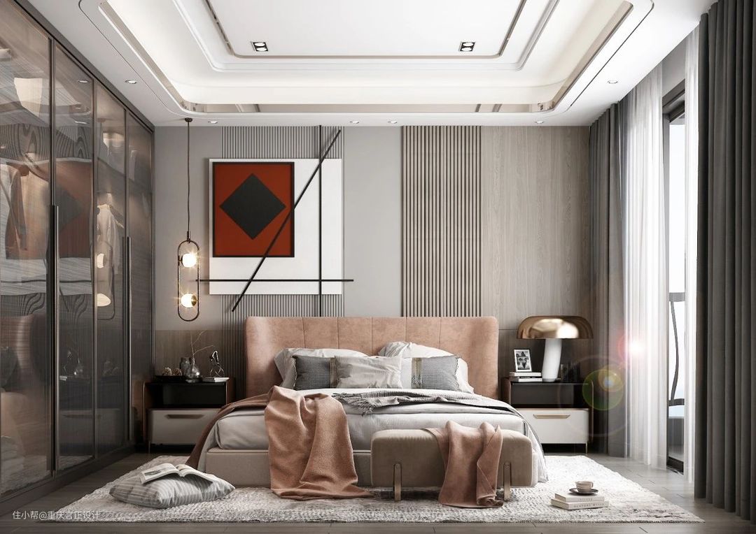 其实呢,窗帘也有隔音的效果,绒面窗帘厚重,吸音和遮光效果好,灰常适合用在卧室,如果觉得绒面窗帘不好打理,也可以换成厚一点的遮光帘+纱帘,效果也不错~