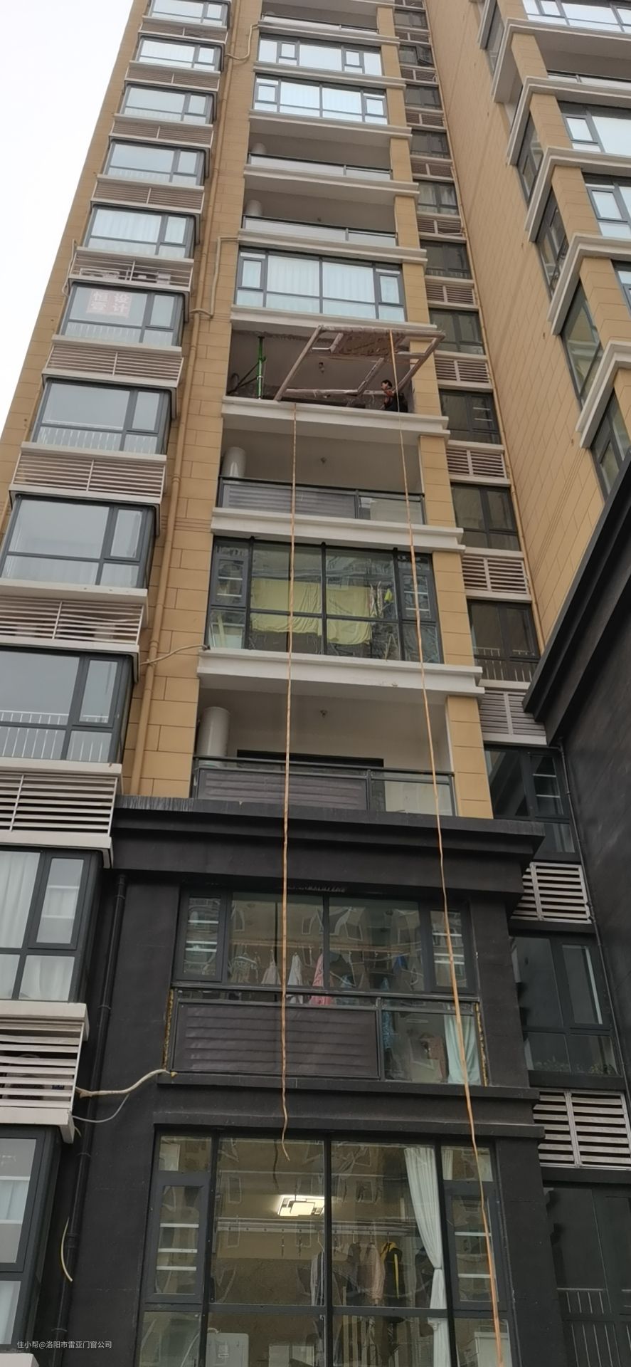 洛阳大玻璃封阳台,户外高层吊装,不敢接太危险了