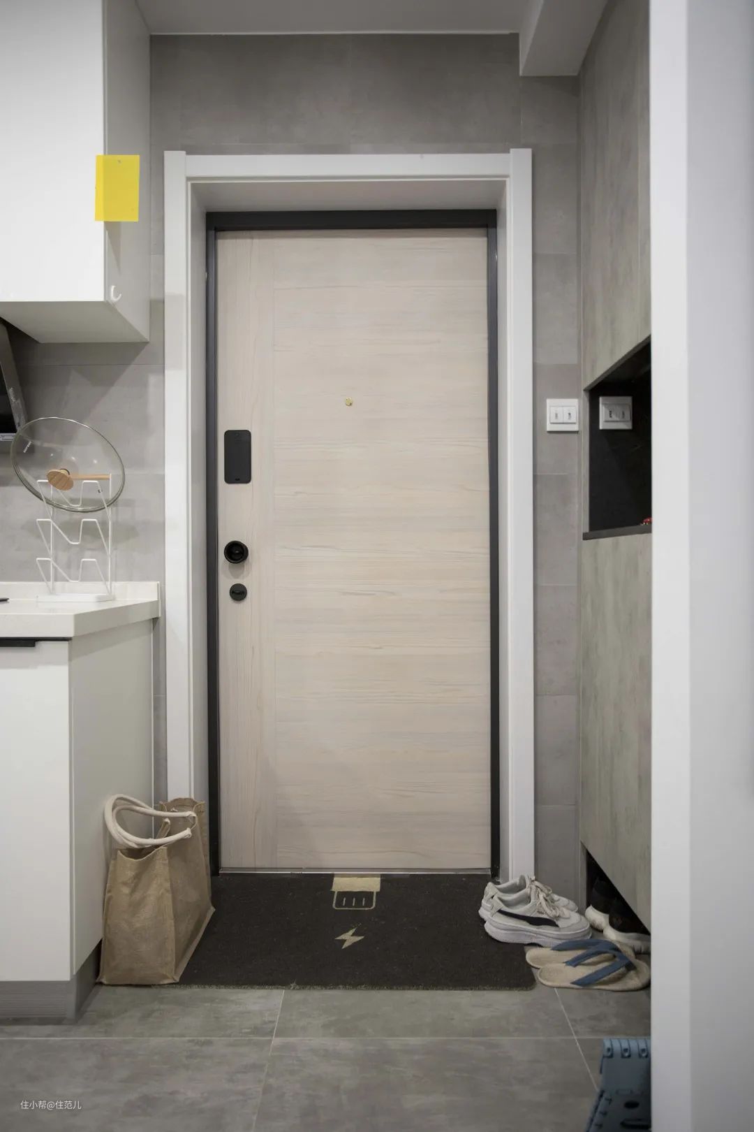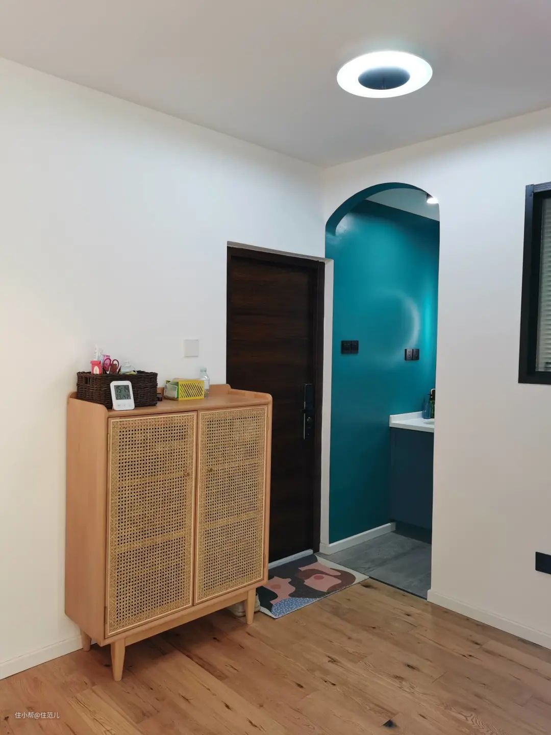 住范儿在北京丰台的一个客户家,50㎡的小户型,进门没有玄关,加了这个鞋柜,鞋柜的台面上还可以用于临时置物。